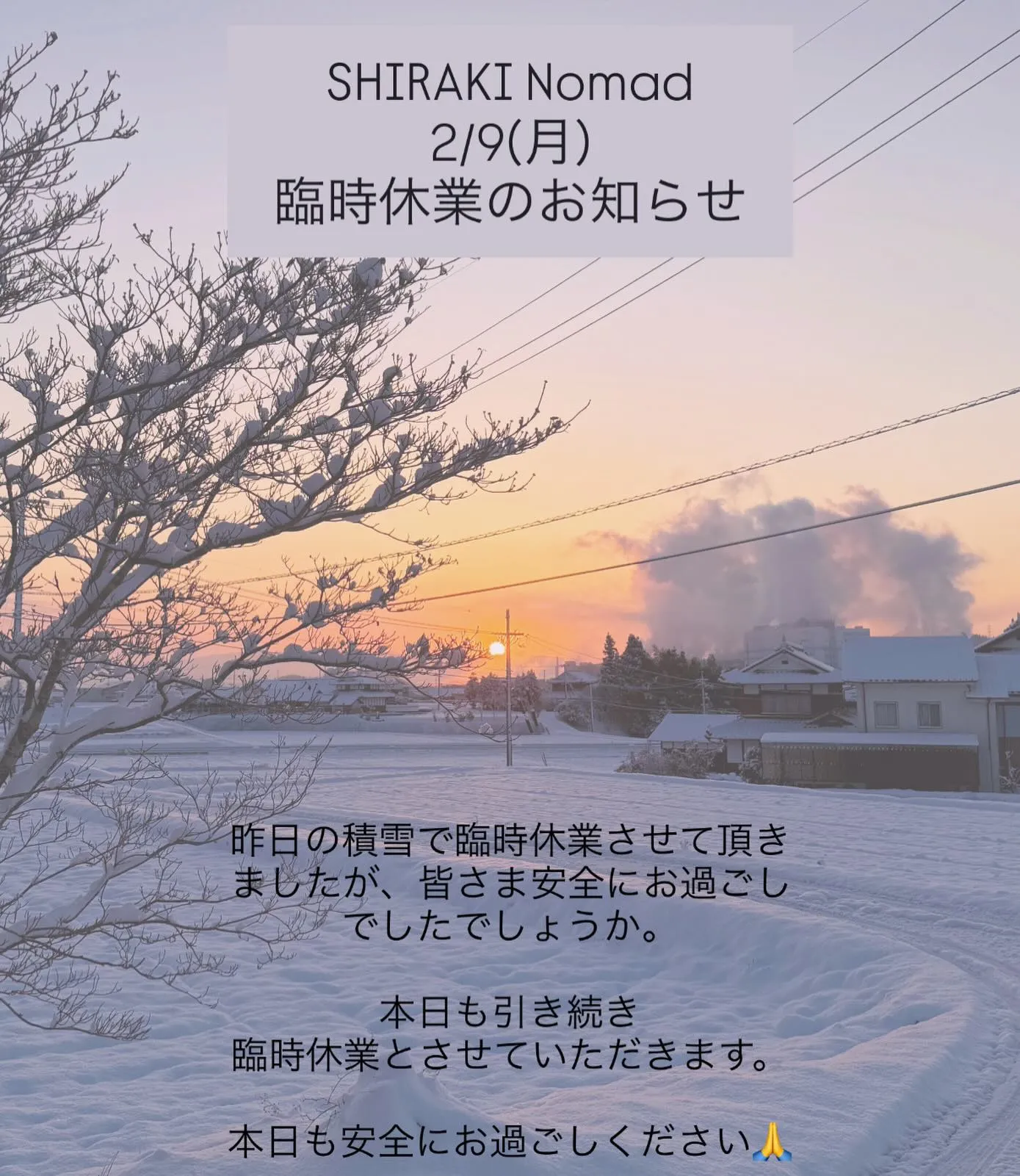 2/9(日)café Nomad臨時休業のお知らせ